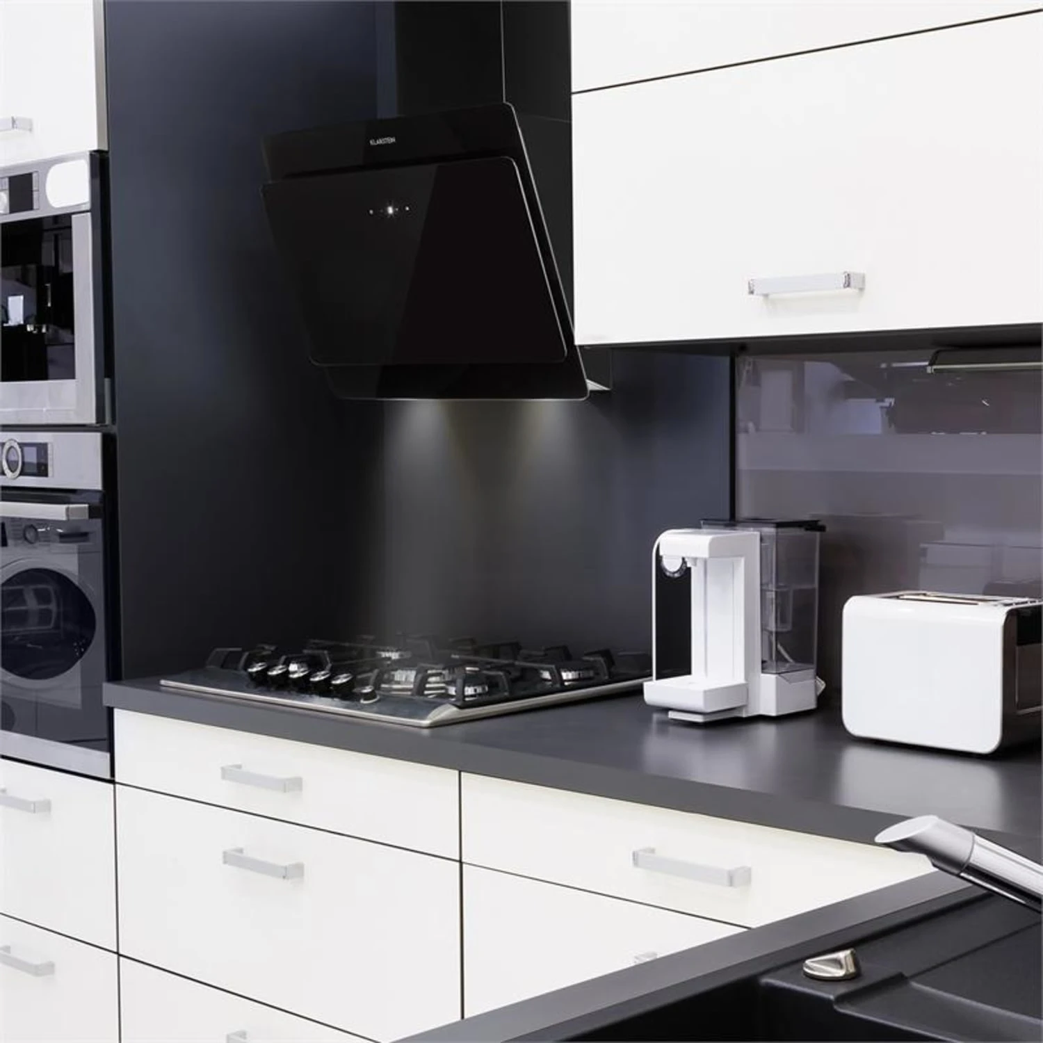 Aurica Dunstabzugshaube Umluftset 60cm Aktivkohlefilter Schwarz