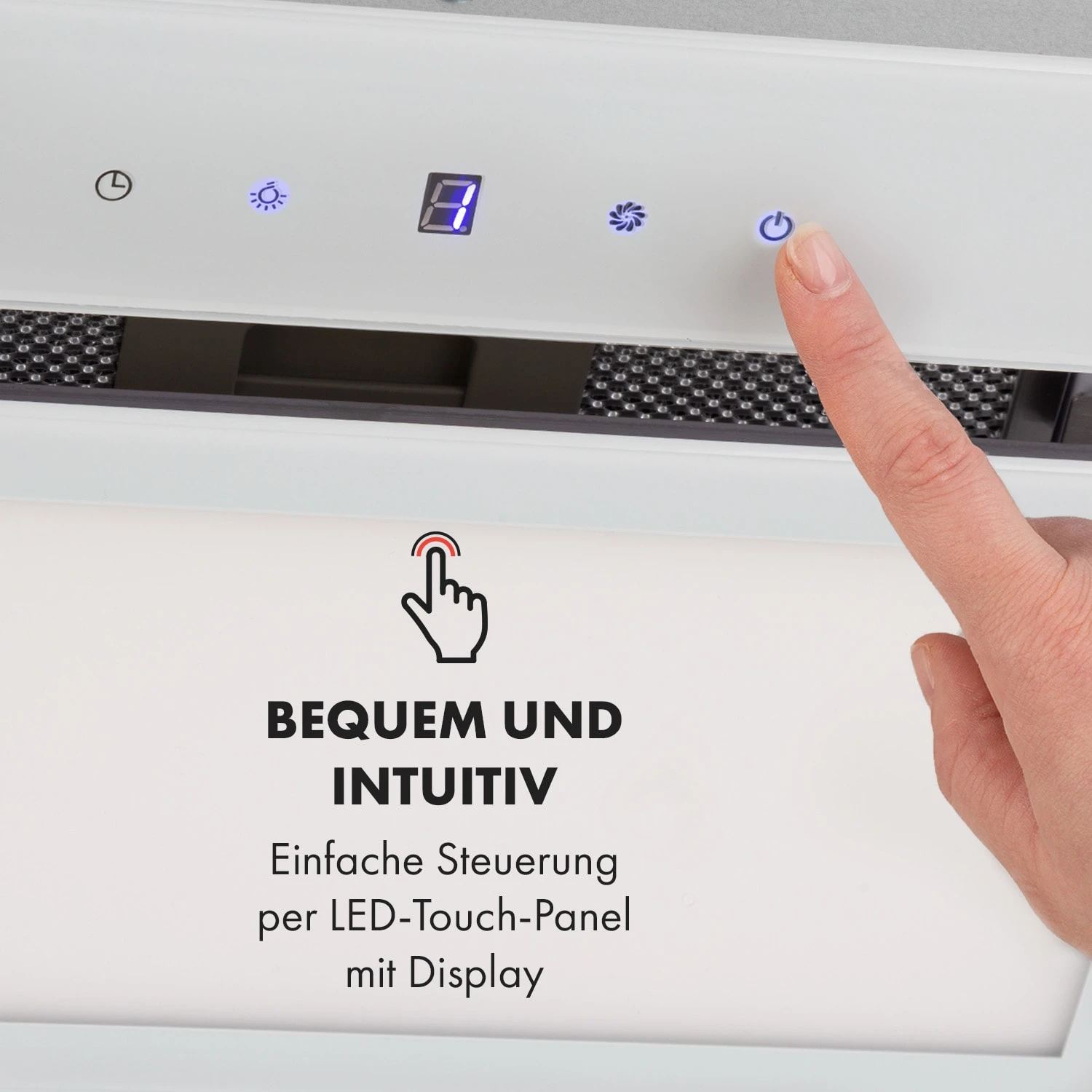 Der Klarstein Hektor Brilliant Edition Lüfterbaustein sorgt mit 200 Watt Motorleistung im Abluftbetrieb für dunstfreie Luft in deiner Küche. Strahlend hell wird es dabei über deinem Kochfeld durch das integrierte LED-Panel, das mit 6500 Kelvin Lichttemperatur Töpfe und Pfannen optimal ausleuchtet. Mit den drei Leistungsstufen und bis zu 506 m³/h Abluftleistung weht immer der passende Wind zum jeweiligen Kochaufkommen durch deine Küche. Der besondere Clou des Hektor Brilliant Edition Lüfterbausteins mit seinen 52 x 32 cm (BxT) ist seine Fähigkeit, so gut wie unsichtbar in deiner Küchenzeile zu werden. Anders als die meisten Einbauhauben verschwindet er randlos im Küchenhängeschrank über dem Herd und zeigt sich nur mit seiner edlen Unterseite aus Sicherheitsglas. Hier verbirgt sich auch das unkomplizierte Touch-Bedienfeld, mit der Lüftung, Beleuchtung und die Timer-Funktion gesteuert werden. Der Abschalt-Timer lüftet auf Wunsch für 1 bis 9 Minuten nach und schaltet das Gerät danach automatisch ab. Der eingebaute Fett-Filter lässt sich leicht ausbauen und ist einfach mit Wasser und etwas Spülmittel zu reinigen.