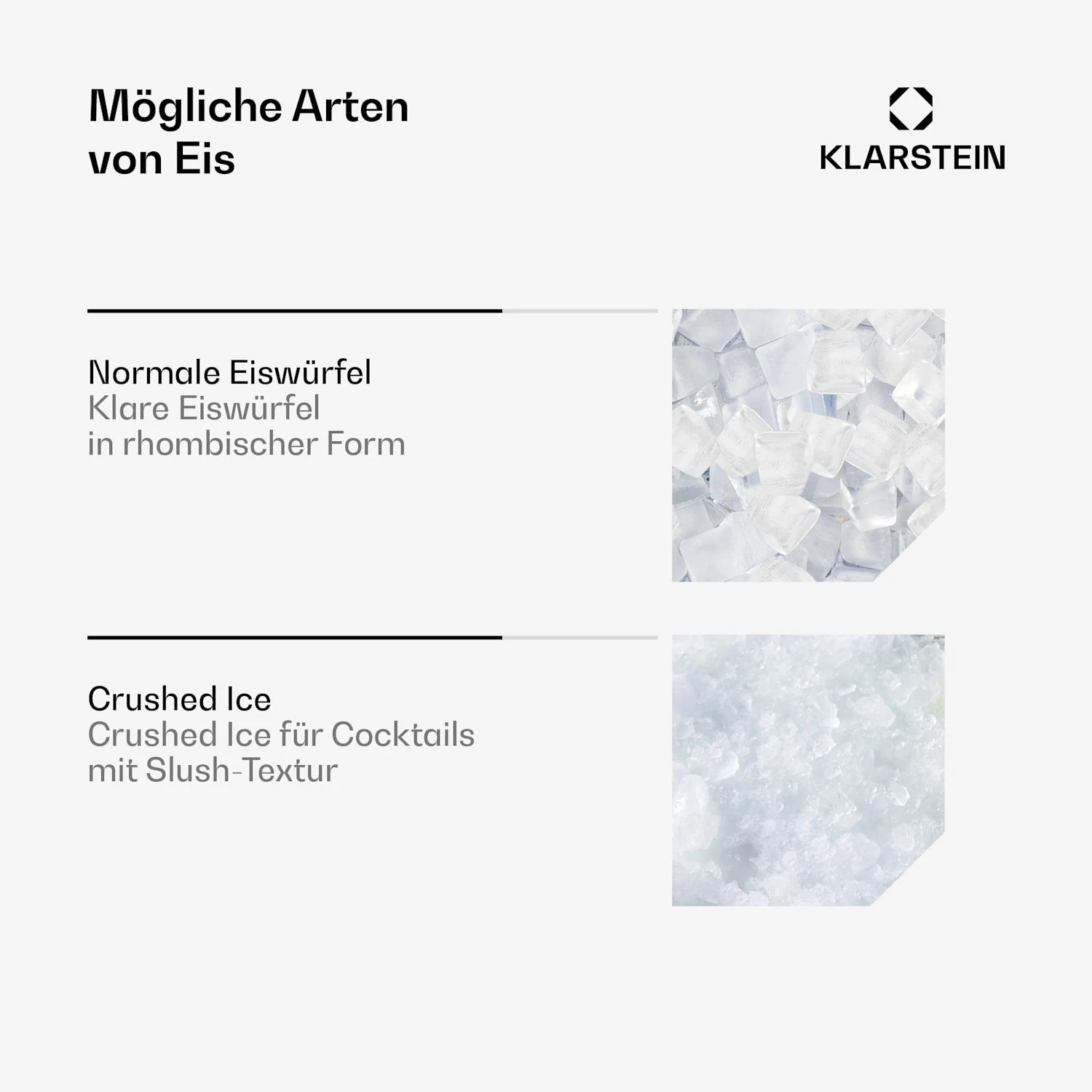 - mit Alarmfunktion bei vollem Eisbehälter und zu niedrigem Wasserstand