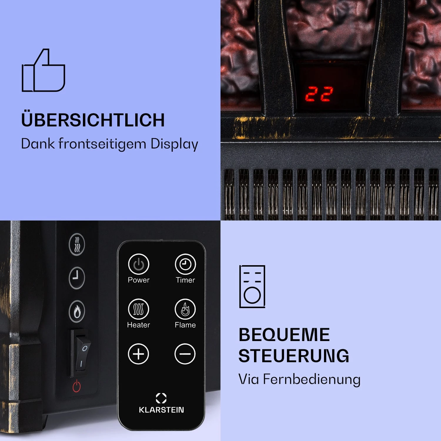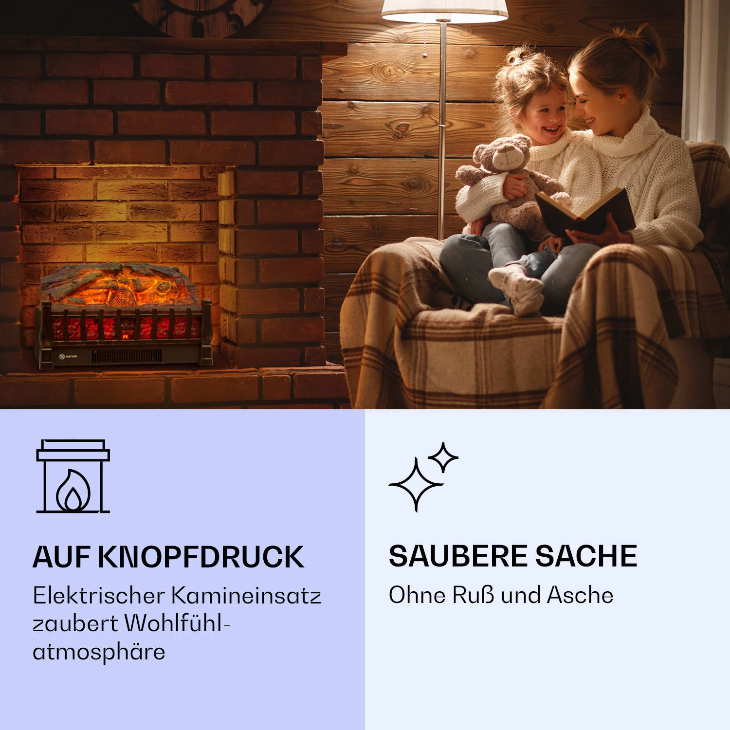 Kamini FXL 2G Elektrischer Kamin Kamineinsatz 1800 W LED-3D-Flammenillusion