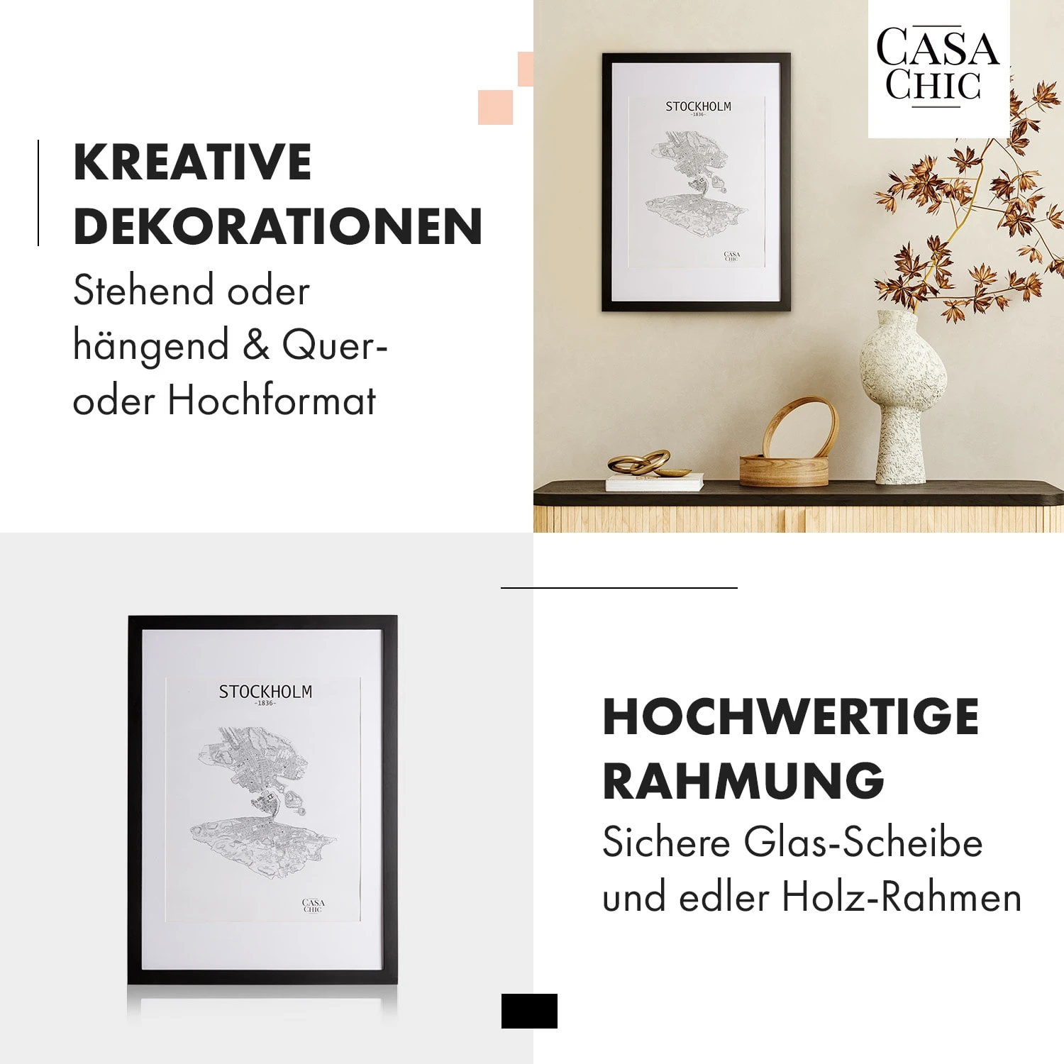 Setze mit den Kenton Bilderrahmen von Casa Chic by blumfeldt deine Lieblingsfotos und Bilder gekonnt in Szene. Die hochwertigen Echtholz-Rahmen veredeln durch ihre schlichte Eleganz deine Zimmerwände. Im Hoch- oder Querformat wählst du dank des mitgelieferten Passepartouts den passenden Bildausschnitt. Hinter seiner bruchsicheren Plexiglasscheibe sind deine Kunstwerke vor Staub und Schmutz bestens geschützt.