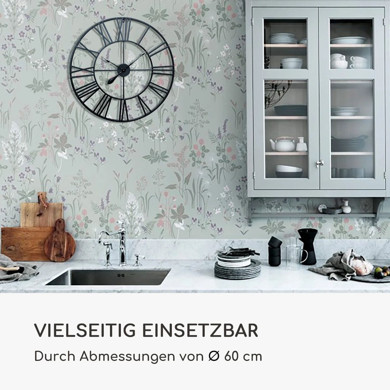 Die Queensway Wanduhr von Casa Chic by blumfeldt mit römischen Zahlen verleiht jedem Interieur eine besonders wohnliche Atmosphäre. Der elegante Metallrahmen mit Vintage-Zeigern macht sie perfekt für jeden Raum, vom heimischen Wohnzimmer über Büros bis hin zum gemütlichen Café oder Restaurant. Die Kombination der leichten Metallzeiger und des hochwertigen Quarz-Uhrwerks ermöglichen eine genaue und stille Zeitmessung! Dank ausbleibender Tick-Geräusche ist die Uhr auch perfekt zur Nutzung im Schlafzimmer geeignet.