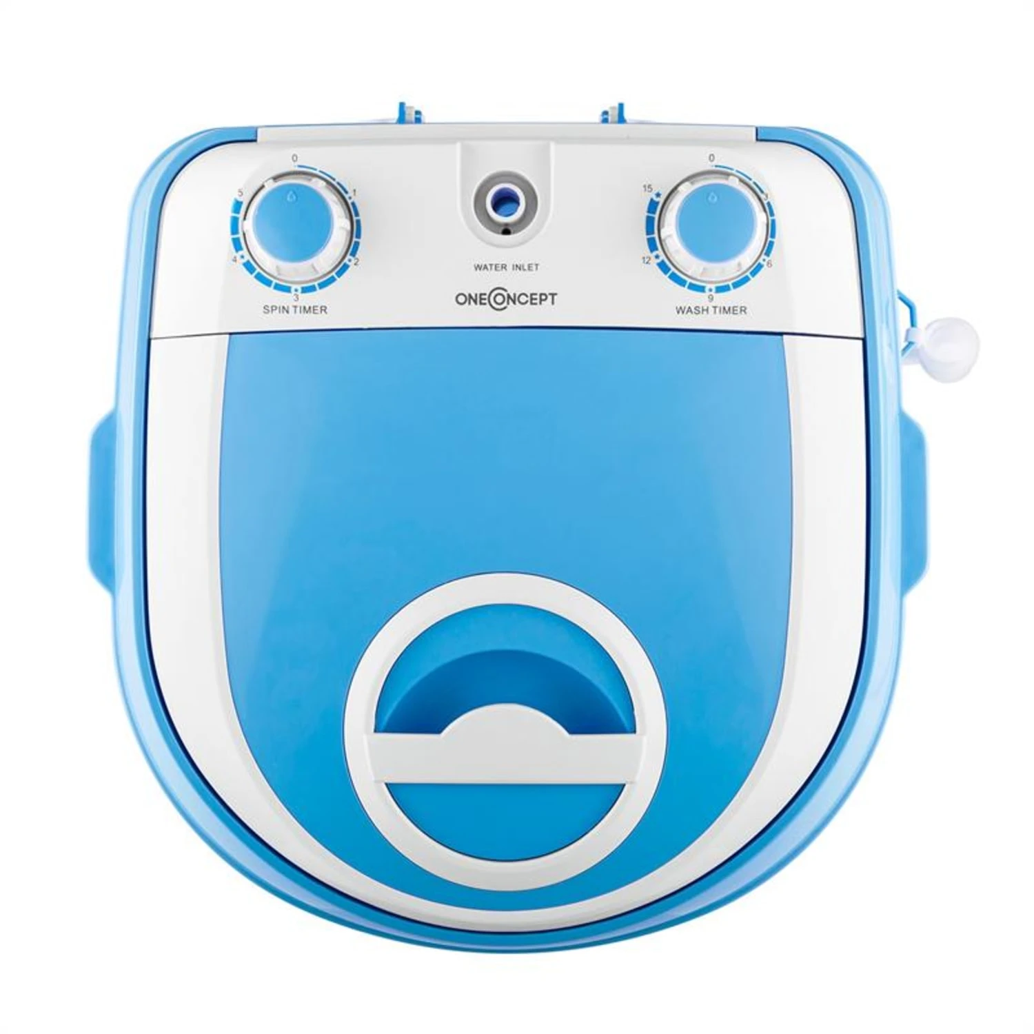 Die oneConcept SG003 ist eine kompakte Waschmaschine mit Schleuderfunktion, 180 Watt Leistung und insgesamt 2,8 kg Kapazität.